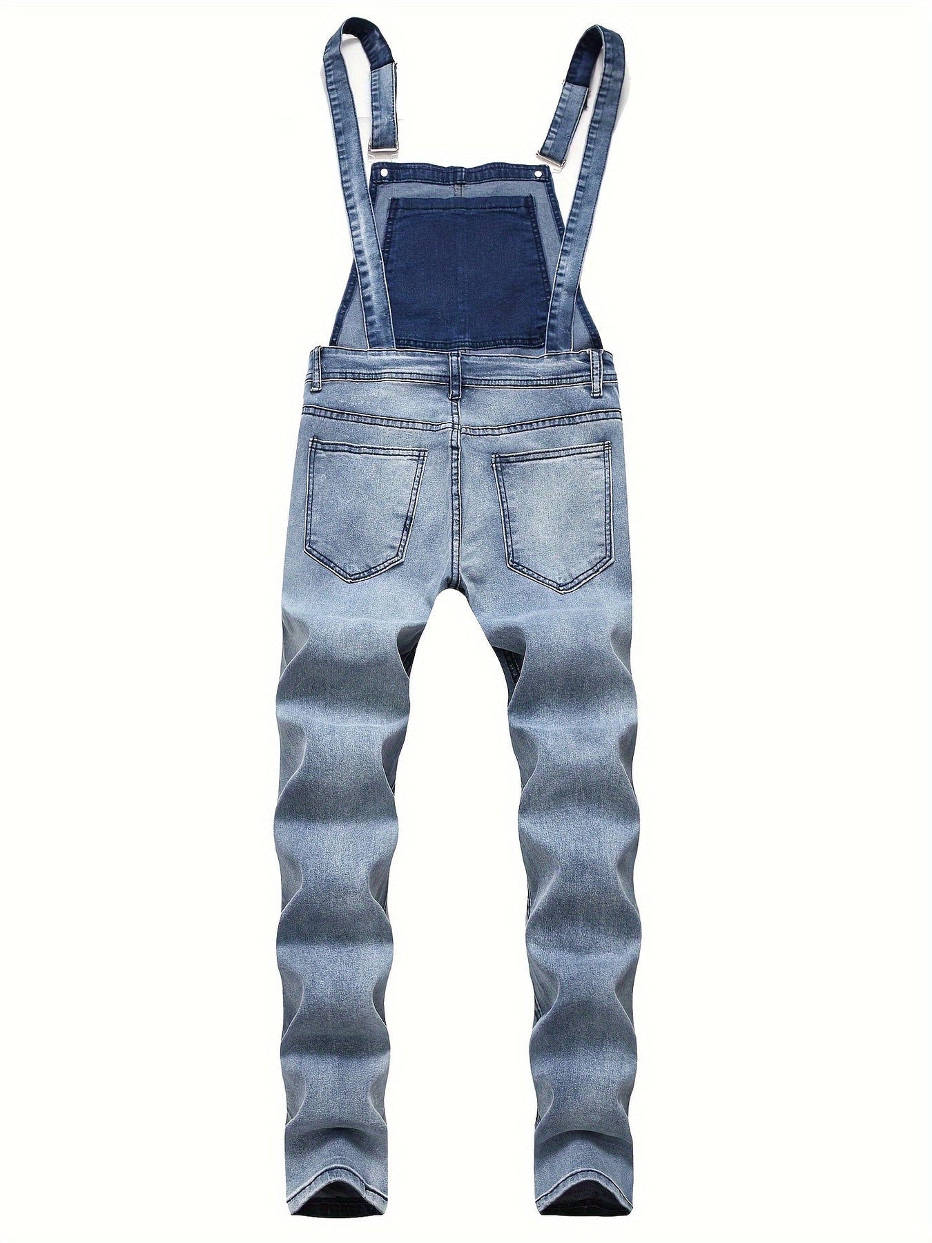 These denim overalls feature a solid color and a medium-stretch, opaque fabric. Their robust design makes them an excellent choice for any fashionable wardrobe.